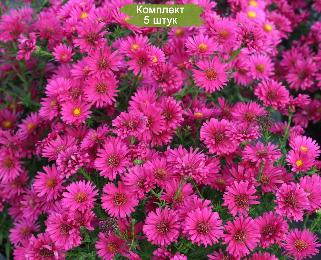 Саженцы поставляются в количестве 5 штук, что позволяет легко создать гармоничную группу растений. Астры этого сорта неприхотливы в уходе, устойчивы к заболеваниям и прекрасно переносят зимовку. Высота взрослых растений достигает 60-70 см, а период цветения продолжается с июля по октябрь, обеспечивая длительное наслаждение их красотой.